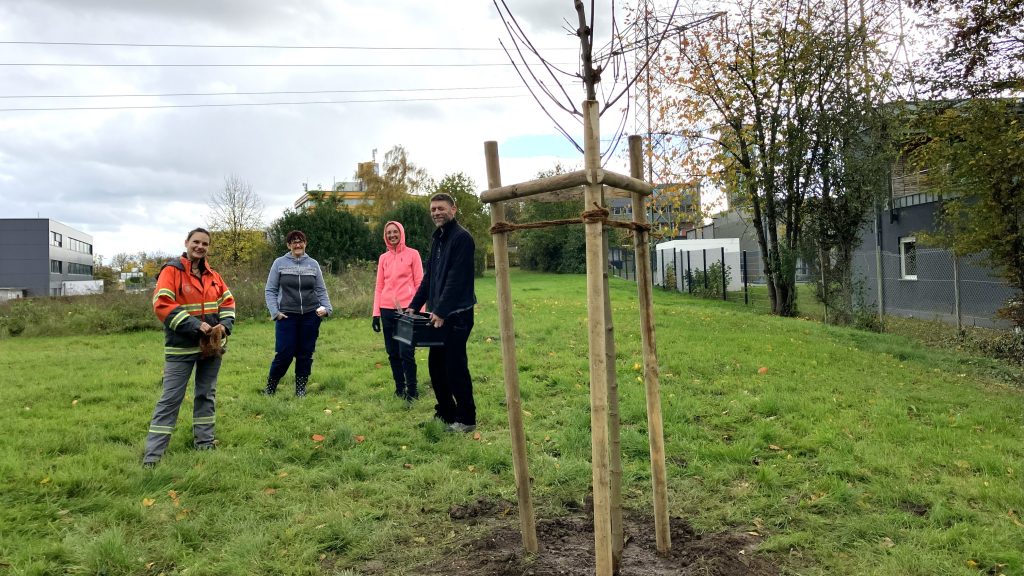 Auch wenn wir den offiziellen Termin am 3. Oktober nicht einhalten konnten, haben wir uns davon nicht abhalten lassen: Drei Wochen später haben wir im Rahmen der Aktion „Einheitsbuddeln“ (Einheitsbuddeln – Die Tradition zum Tag der Deutschen Einheit) zwei heimische, klimawandelresistente Bäume auf unserem Gelände gepflanzt – eine Linde und einen Ahorn.
